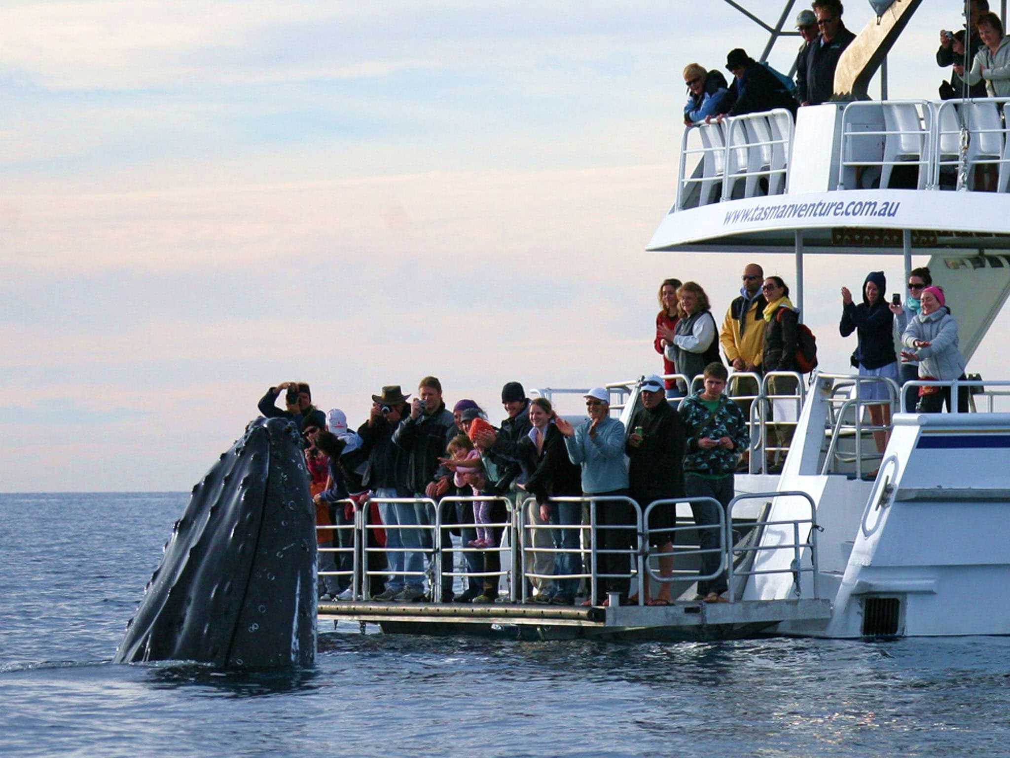 Onboard tours our Skippers & Naturalist Guides offer expert commentary throughout the cruise. Our team often describes what our passengers are viewing as we move along or while we are observing the Humpback Whales or other marine life, and when we know we need to take extra time to paint a picture for our guest, we do so with audio aids such as microphones, speakers throughout the vessel and visual aids onboard. Tasman Venture III is fitted with a Television screen to display additional visual aids to enhance guestsโ experiences.